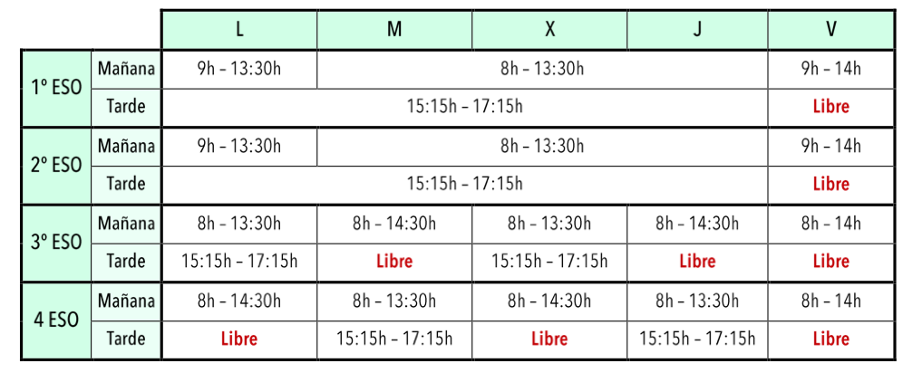 Jornada continua. Horario de lunes a viernes, de 8h a 14:30h